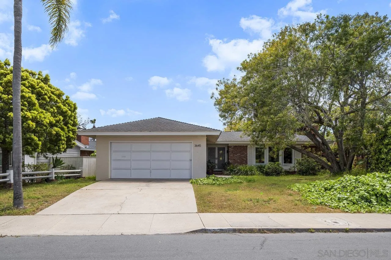 Single-story, well-maintained home in bridges estates! 3 bedrooms, 2 full baths and an attached 2 car garage on a spacious lot, with a great floor plan, dual pane windows, central ac and potential to build an adu or add value. Formal dining room for entertaining. Living room with fireplace & primary suite with walk in closet open up to the enclosed patio. Original hardwood floors under carpet in living room, dining room & bedrooms. Mature landscaping with fruit trees. Blocks to bay, liberty station & plumosa park!