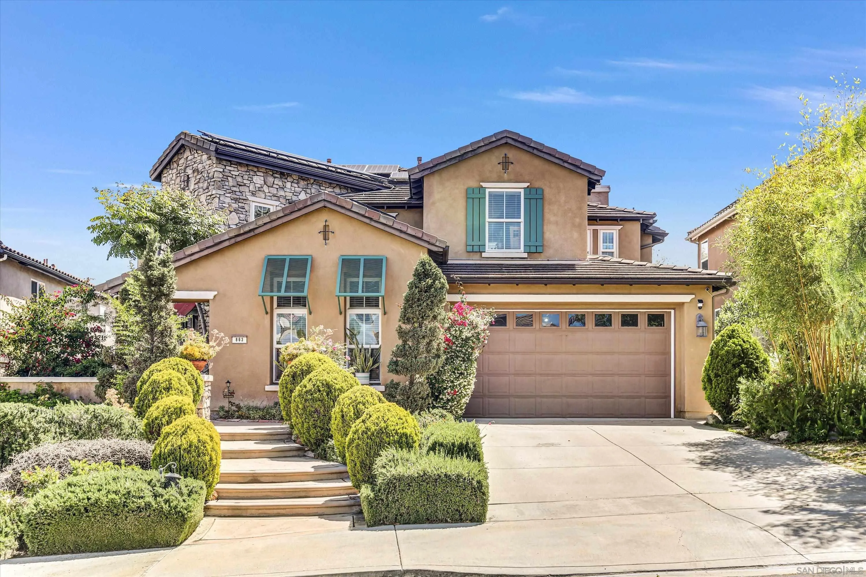 Tucked behind the gates of tessera at rolling hills ranch, this executive residence offers something rare magnificent panoramic views of the mountains and lake, framed by a professionally appointed interior designed for both family living and effortless entertaining. A lushly landscaped entry and oversized steps lead to a graceful curved staircase, hand-set rock walls, and a warm blend of finishes that set the tone throughout. The chef's kitchen features cherry cabinetry, granite countertops, and a generous island crowned by a stainless illumi