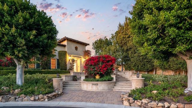Award winning courtyard design meets elevated living discover the pinnacle of refined living in this coveted cortile collection home, nestled within the bridgesrancho santa fes premier golf and tennis community. Ideally situated at the end of a tranquil cul-de-sac, this single-level masterpiece offers year-round sunset views, transforming every evening into a celebration of natures beauty. This home effortlessly blends sophistication with comfort. A private courtyard sanctuary, complete with a cozy fireplace, media amenities, and generous seati